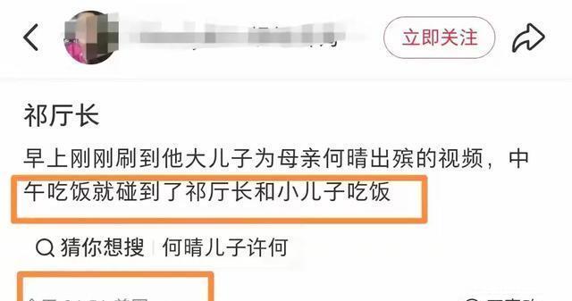 还有网友扒出,就在许何送别母亲何晴的消息铺天盖地之际,有人在美国偶遇祁厅长和小儿子一起吃饭,并将此作为许亚军不关心大儿子的“罪证”,对其进行网暴。