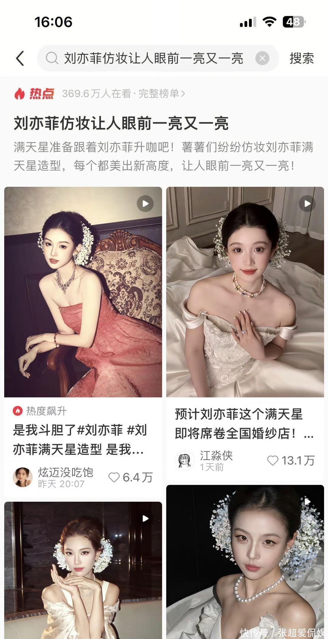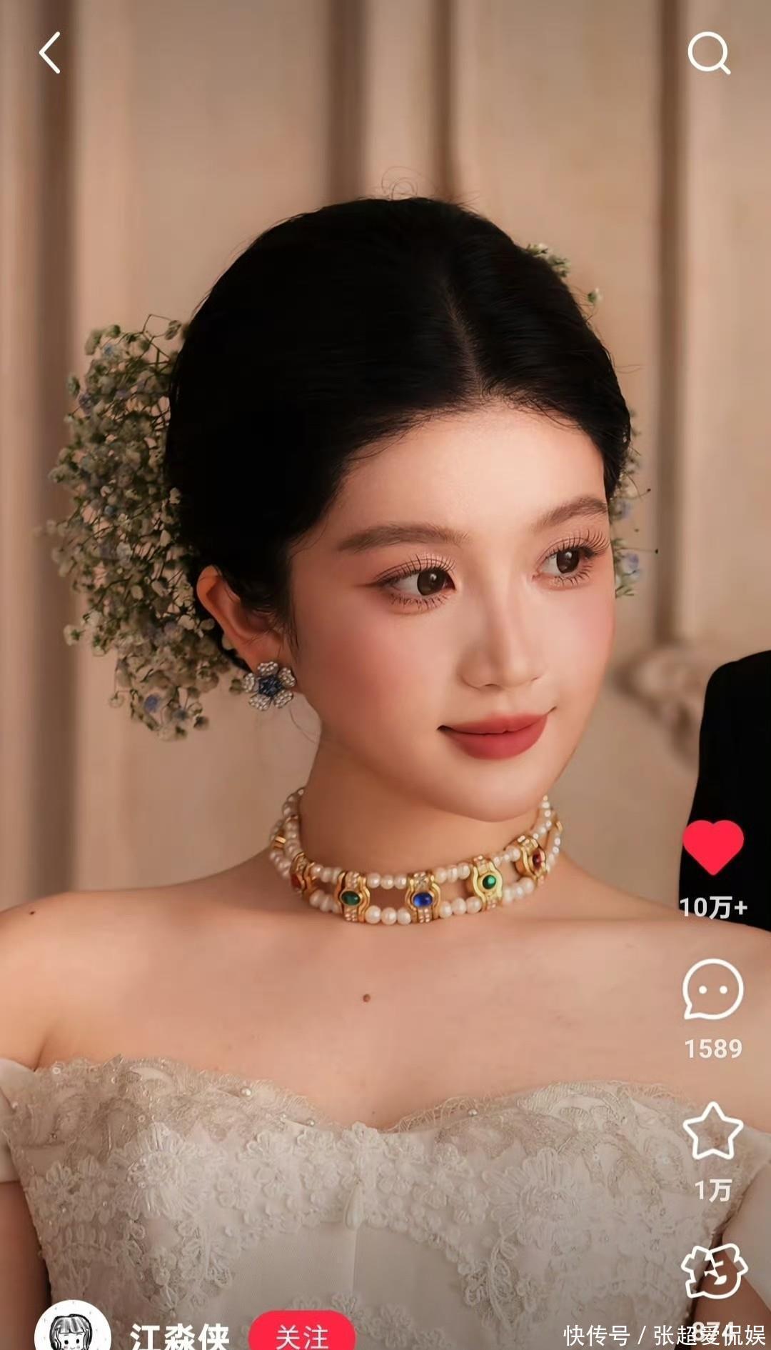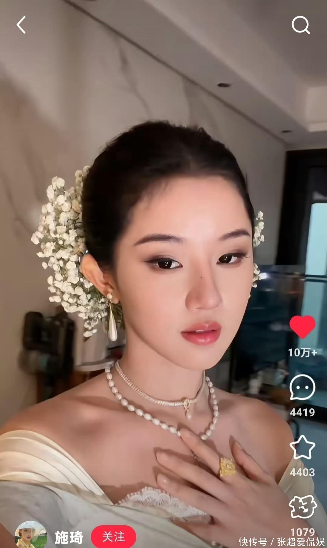 不光普通人跟风,连商家都闻着味儿来了。苏州有家婚纱店直接把仿刘亦菲造型的海报贴在门口,标注“花神套餐”,说是拍婚纱照送同款满天星头饰,订单排到了下个月;淘宝上更夸张,“刘亦菲同款簪花材料包”搜爆了,有店家说以前一天卖几十份,现在一天能卖上千份,连带着蟳埔非遗簪花工艺都火了,不少人专门搜“蟳埔簪花教程”,就为了get同款氛围感。